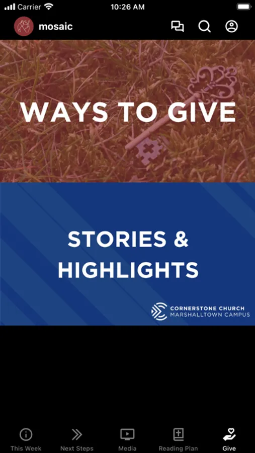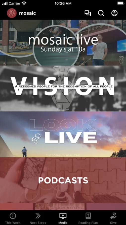 Connect and engage with our community through the mosaic church app! Download our app to browse media content, give conveniently, stay up to date, and learn more about us.