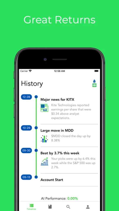 * Your Timeline offers sleek performance tracking and new stories relevant to your picks