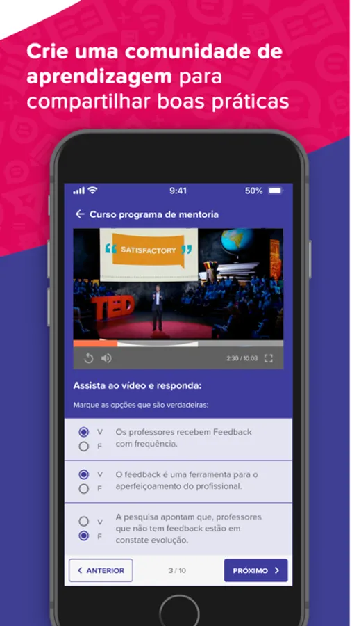 Com as soluções da Educate Formações, o usuários podem criar um processo único para formação continuada de seus professores. Identifique evidências a partir da observação de sala de aula, ofereça feedbacks, mentorias e coaching aos professores e crie uma rede de conhecimento para compartilhar as melhores práticas da sua escola.