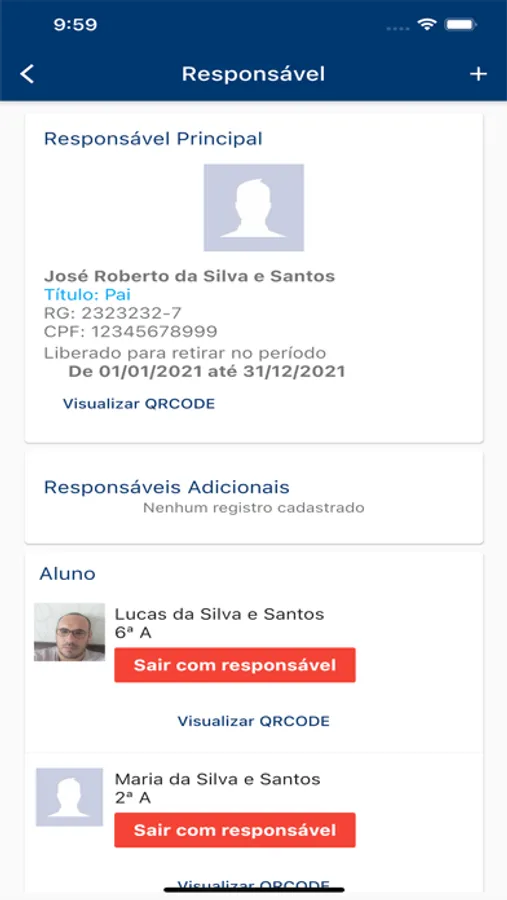 - Adicionar um responsável adicional para buscar o aluno no colégio