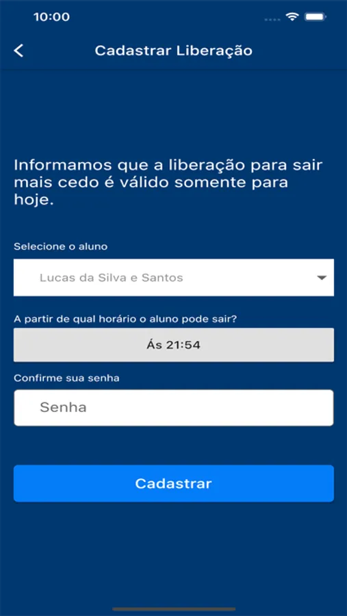 - Indicar se o aluno pode sair mais cedo do colégio em um dia específico