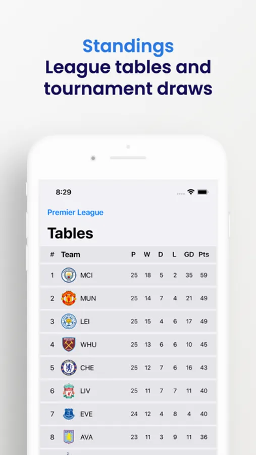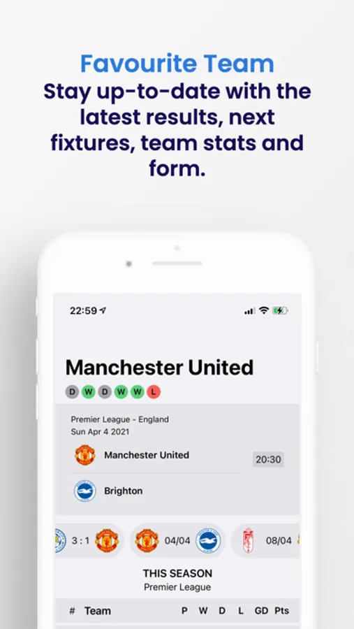 Select your favourite team and stay up-to-date with the latest results, next fixtures, team stats and form.