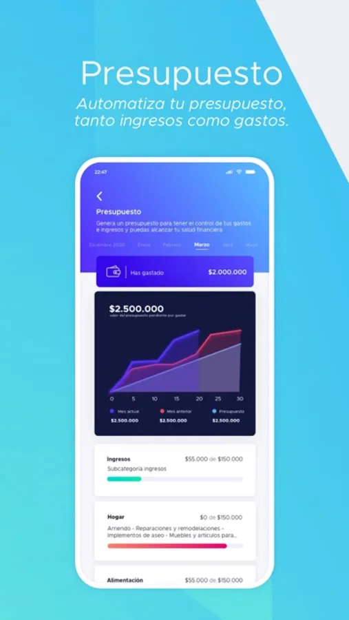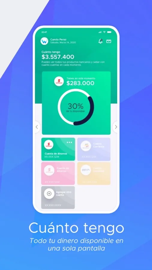 Con nuestra aplicación puedes: Consolidar la información de diferentes bancos, crear y controlar tu presupuesto personal y definir tus metas de ahorro y hacerles seguimiento. Con el apoyo de nuestra tecnología automatizas esas tareas.