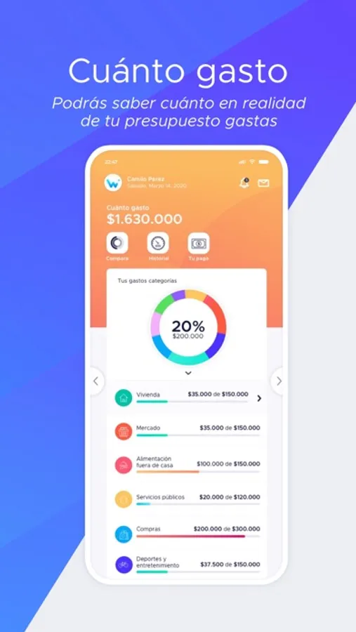 Wioba incorpora una práctica funcionalidad para construir el presupuesto personal y realizar un seguimiento permanente por cada categoría.