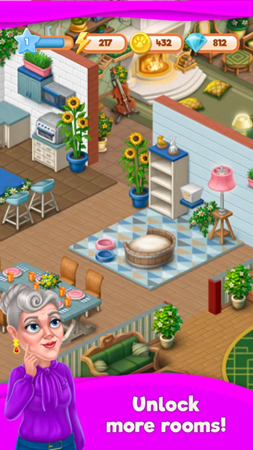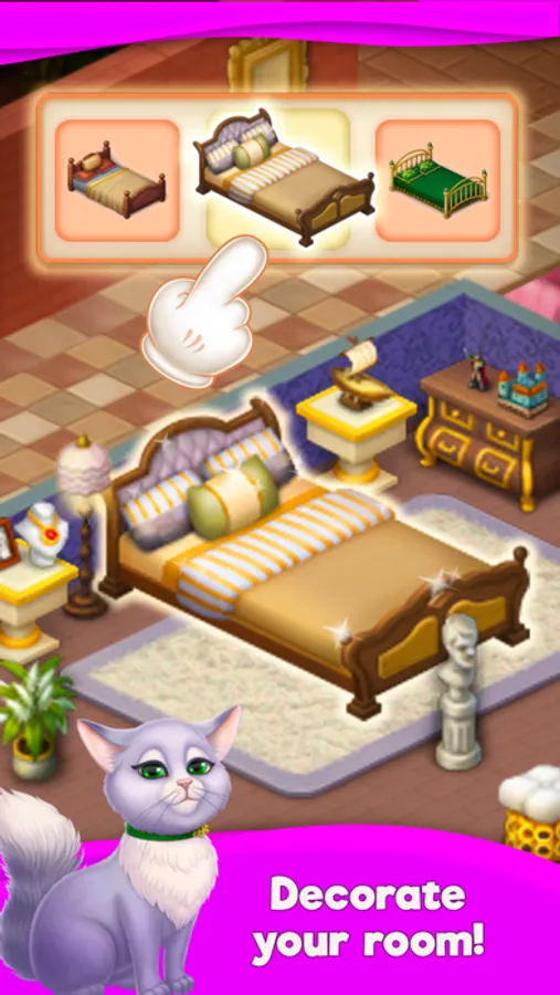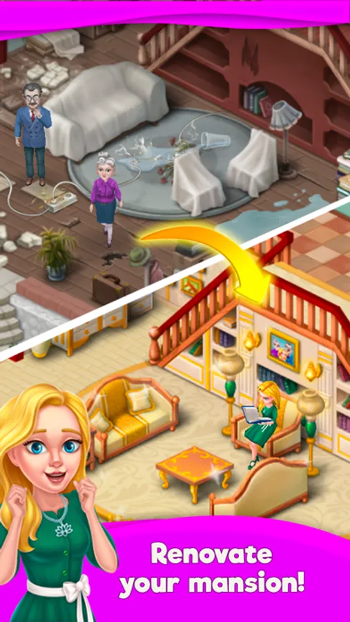 Unlock new rooms with unique gameplay, luxurious decorations, amazing animations.