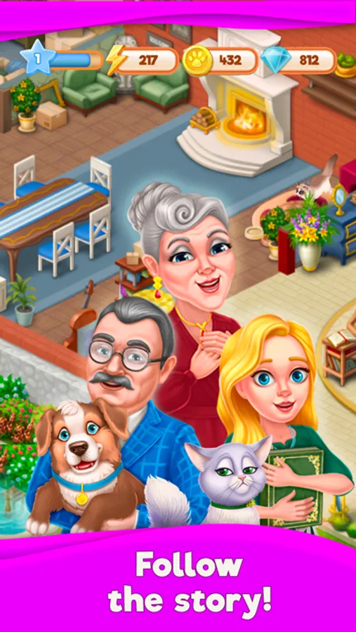 You don’t have to do it all alone. Become friends with new characters on your adventure that will help you with the renovation, and don’t forget about your four-legged friends! Take care of the animals and help your pets by giving them a nice place to live. Care for fluffy puppies and cute kittens, as you work to build them a loving home.