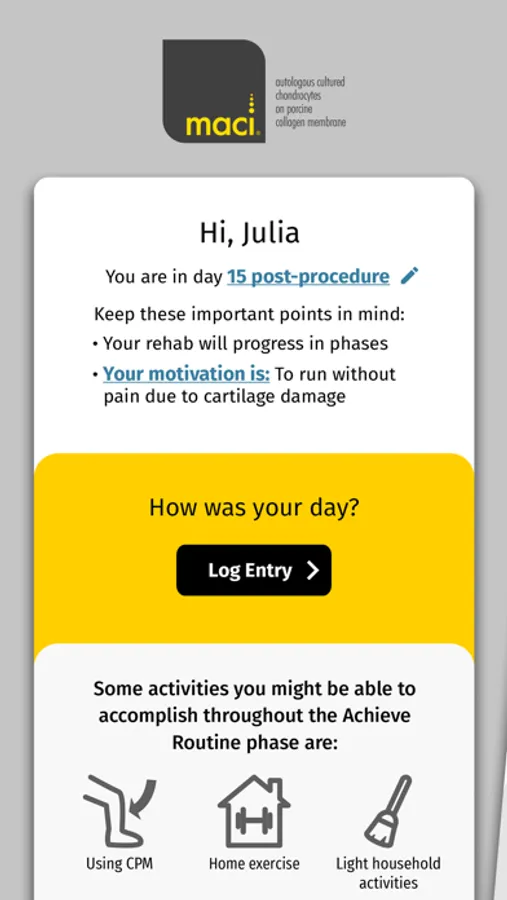 Use the My MACI App to personalize your recovery experience and help you stay motivated throughout your rehab journey.
