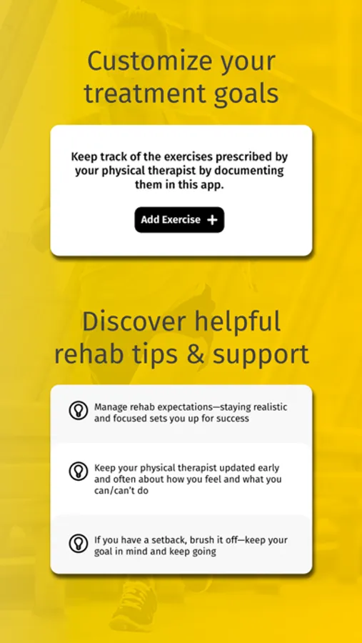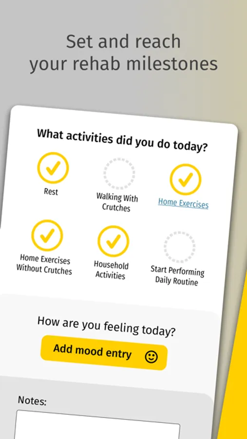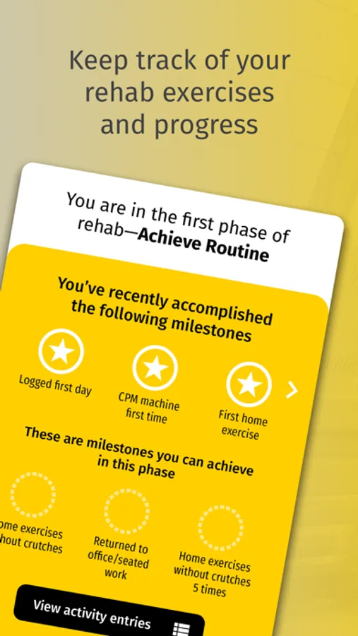 • Keep track of your rehab exercises and progress