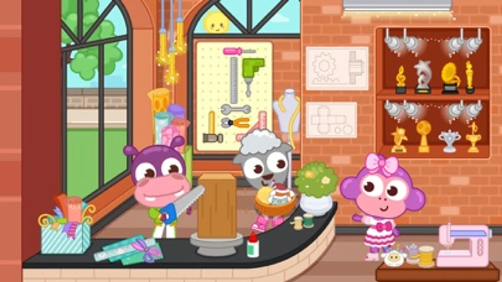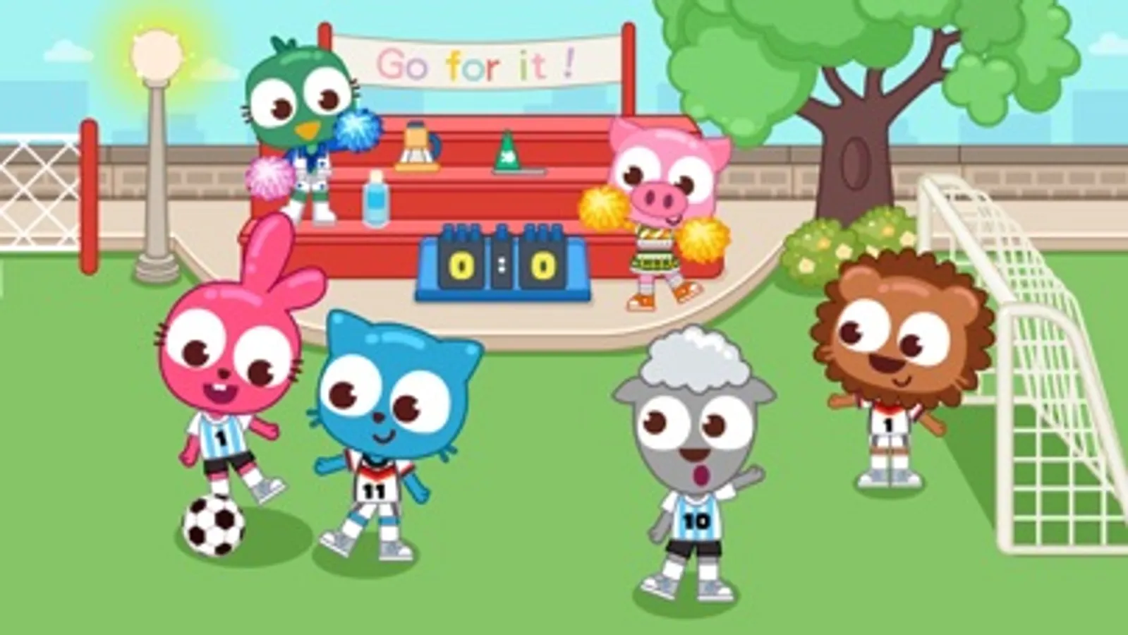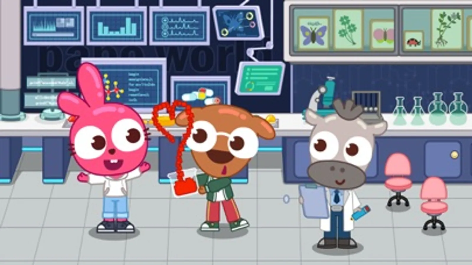 Papo Town School Life simulates the real school scenes and activities! There are so many props you could play and interact with, like the slides, swings and ball games in playground, the test tubes and plants in lab room, the music instruments like drum, piano, violin and guitar in the music room and lots more items to use! Each room has a fun mini game like pizza maker and music test, challenge yourself for higher score!