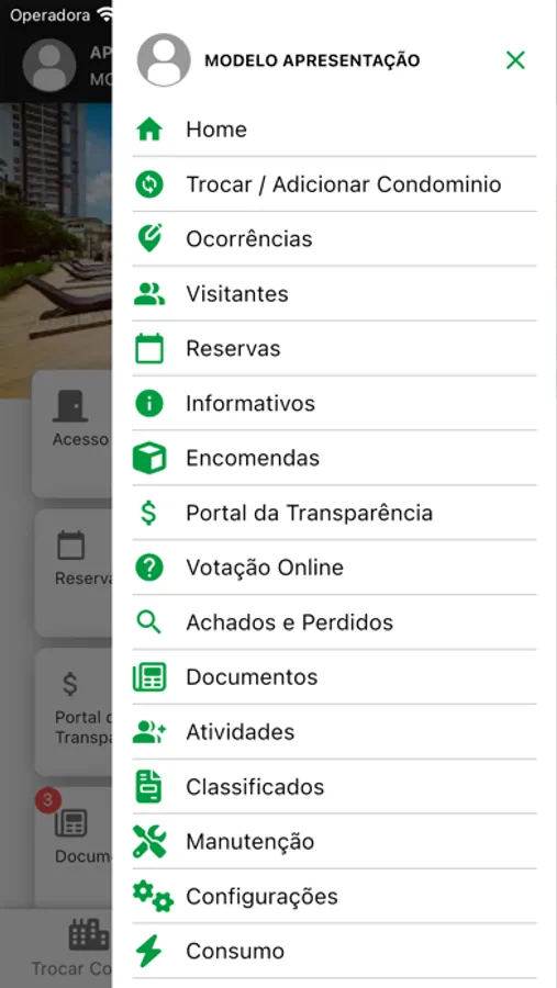 Chega de papel! Tudo que você precisa em um só lugar. Reservas, ocorrências, visitantes, cadastro de moradores, informativos, enquetes, documentos e muito mais.