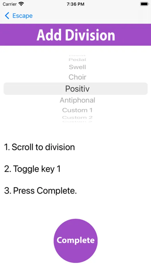 For use with PipeOrganControl systems, this allows the user to play, tune, test the pipes from iphone devices. Any two pipes can be played and stepped in chromatic, diatonic, or tierce layouts. There must be a MBB hardware board installed between console and chamber for bluetooth connection.