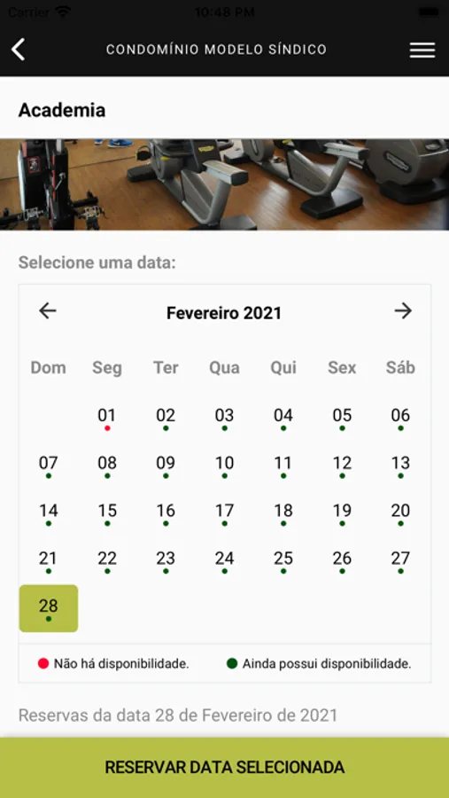 Consulte a disponibilidade e reserve/cancele sua área de lazer.