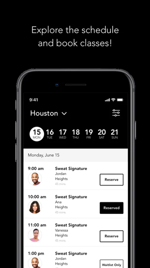 The mobile application for SWEAT where you can book and purchase classes, purchase ancillary items for your workout, assign spots for friends and all things SWEAT.