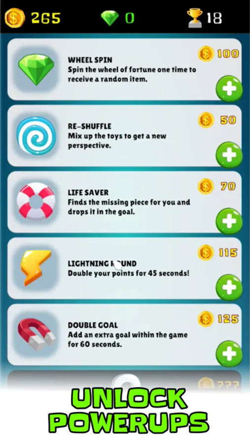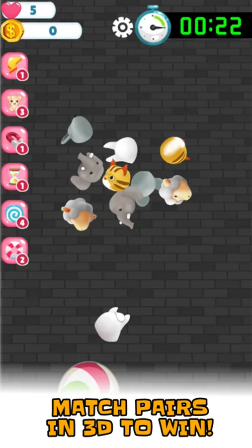 Many cute and fun items, such as adorable animals, funky fruit and crazy cars. Match each pair of 3D objects before the time runs out to win the round. After each round you can buy power ups and enable special skills to help you win the next level.