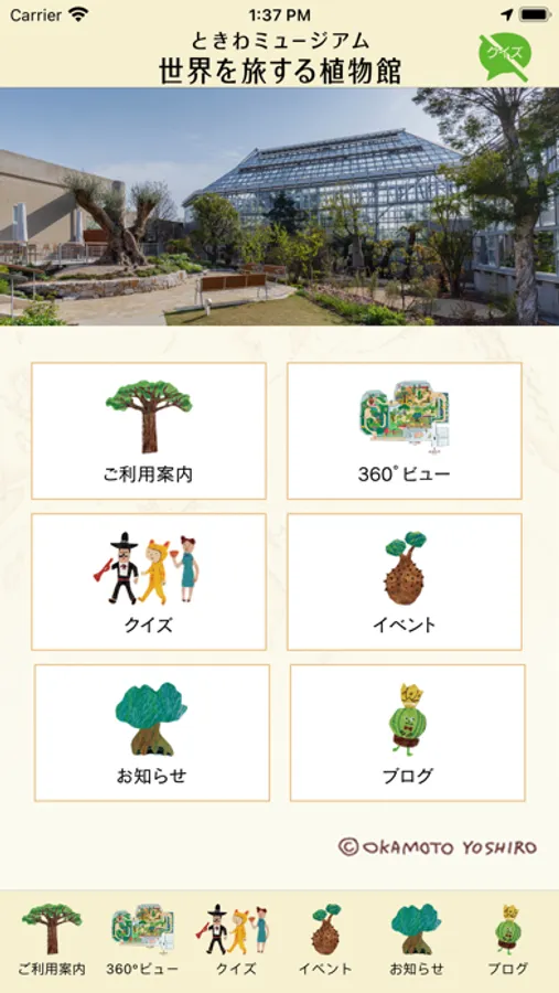 館内の8つのゾーンごとの360度ビューが見られるほか、来館時に館内を歩いていくとクイズにも挑戦できるなど、おうちでも館内でも楽しめるアプリとなっています。