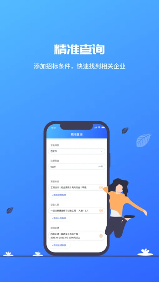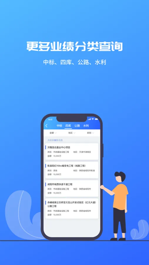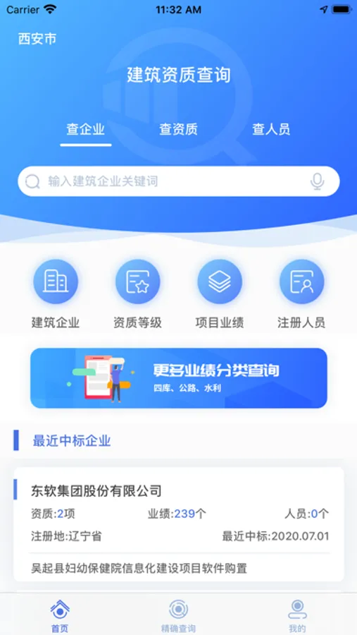 《建筑行业查询》是一款建筑行业信息的查询工具,通过多年数据积累和大数据分析,实现了全国施工企业的中标业绩、公路网业绩、四库网业绩、水利网业绩、资质等级、诚信信息、注册人员、工商信息、经营信息等多维度查询,为用户提供建筑行业信息服务。