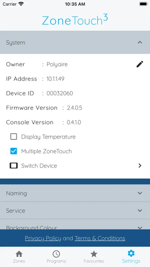 The ZoneTouch 3 app is the remote control of your ZoneTouch 3. Turn the airflow on and off, or adjust the volume of conditioned air in each zone of your home from your smart device.