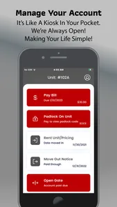 - Certain locations allow rentals to be performed from this app. You can pay for the unit, easily sign your lease agreement and receive a gate code to obtain access all from our app.