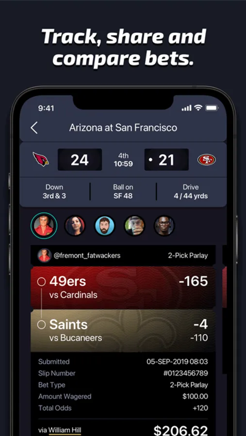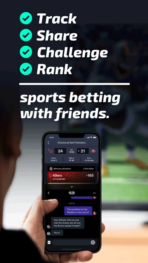 Social betting app, sports bet tracker, sports betting tips, public chat forums, private chat with friends! A social network and gamified sports betting experience designed to allow bettors to share, compete and compare their sports betting picks and sports betting tips.