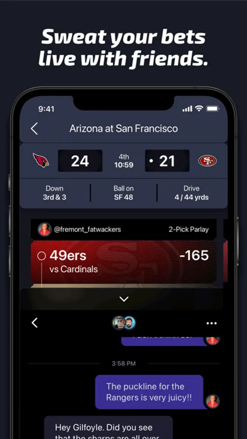 + Real-time betting alerts of your friend's bets or from pro bettors you are following