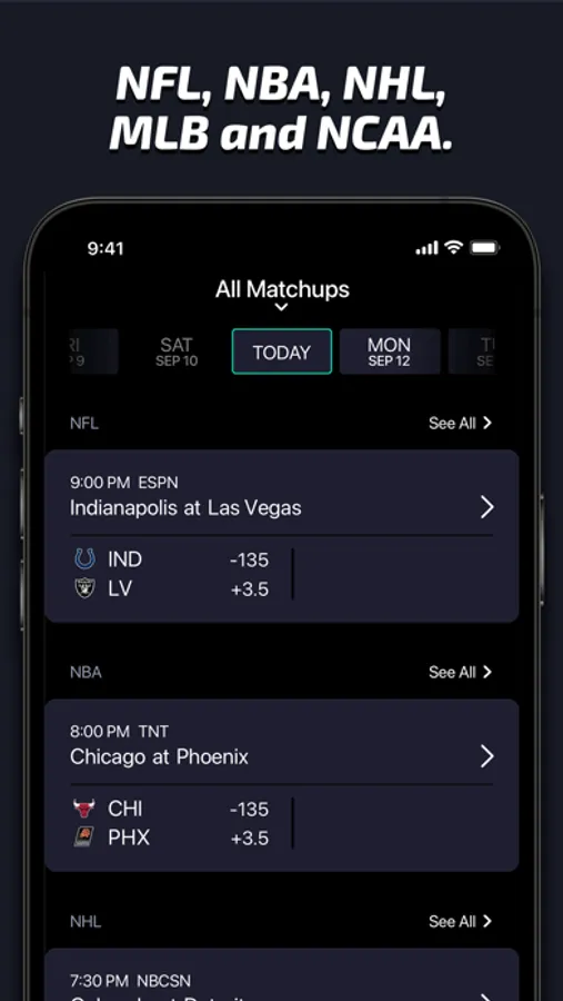+ NFL, NBA, NHL, MLB or College Football with more sports like MLS and English Premier League soccer, CFL football, and ATP tennis on the way