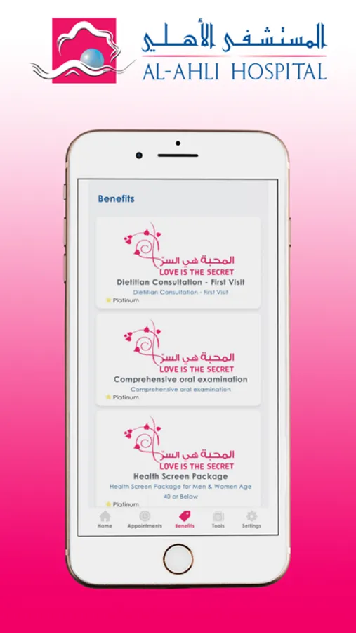 Al Ahli Hospital exclusive loyalty program where guests can enjoy a range of benefits in appreciation to them making Al Ahli hospital their number one choice for all their healthcare needs".
