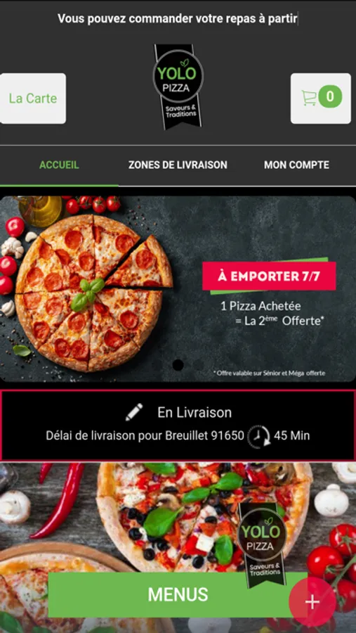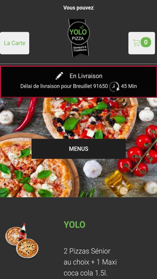 L'application Yolo Pizza Egly vous permet de commander en ligne ou par téléphone via votre application . Vous pouvez consulter notre carte et choisir vos produits.