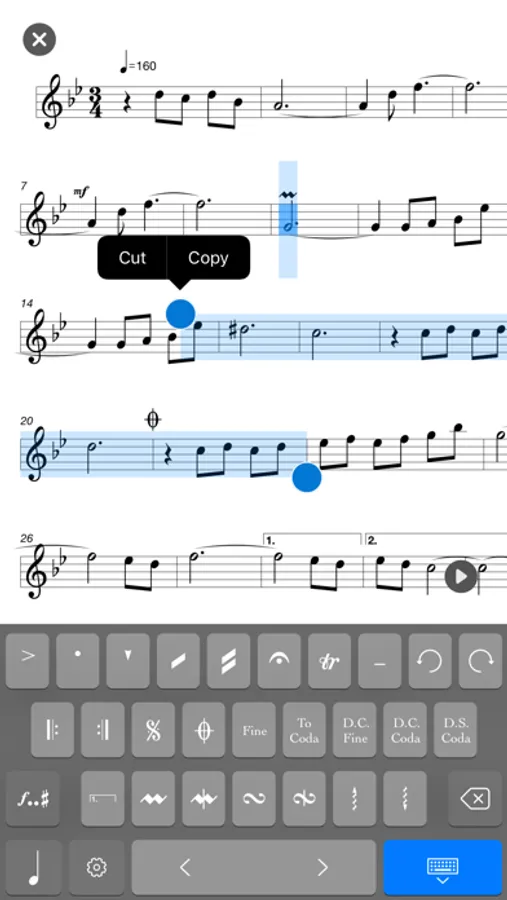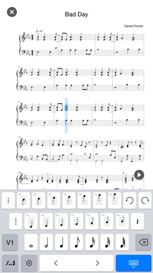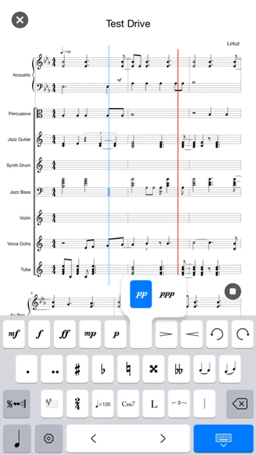 A handy sheet music writer app, make writing sheet music feels like typing notes. Tap on the keys with notation in a familiar keyboard layout. Provide a very easy way to compose music score. Support up to 8 parts, over 100 instruments, variety of music symbols and notations. It is very friendly for rookies while professional enough for experts.