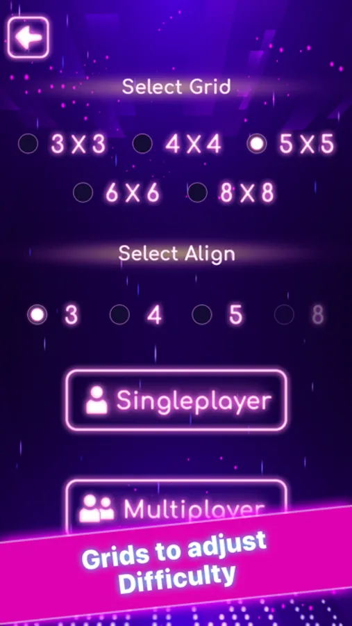 - Various options of ‘rows x columns’ grid - 3x3, 4x4, 5x5, 6x6, 8x8