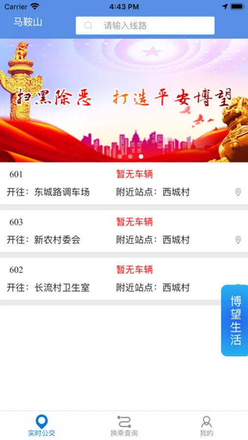 “博望公交”APP是马鞍山市横望交通有限公司打造的博望区公交实时信息查询平台,用户可以通过自己的手机,随时随地查询博望区各公交车辆的实时位置、线路信息、换乘信息等,方便用户适时安排自己的乘车计划,大大提高了出行效率,让市民出行更绿色、更方便、更快捷。