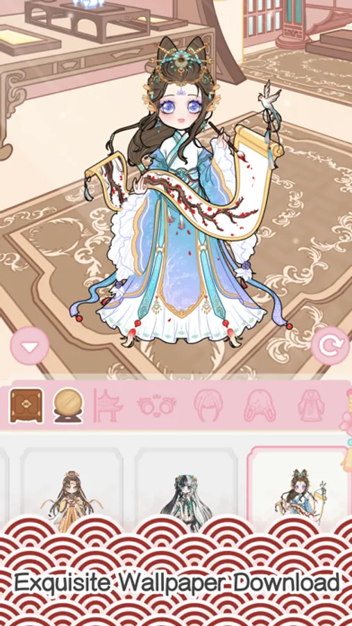 "Courtly Makeover - Pastel Girl" is a lovely DIY dress up game of two-dimensional self-healing, with exquisite painting style and aesthetic ancient style. You can dress up an antique image and freely match a variety of clothing accessories to create your own exclusive image.