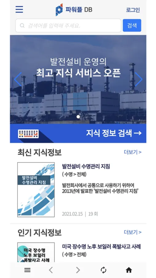 현재 발전설비의 경험 많은 운영자들이 대거 퇴직하고 신입직원들이 점차 많아지고 있어 이러한 각종 기술자료를 체계적으로 제공하여지식을 전달할 수 있는 지식서비스를 구축하게 되었습니다.