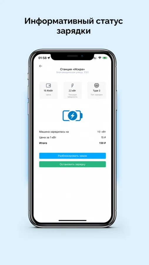 Начните зарядку в два касания. Контролируйте процесс и получайте актуальную информацию. Следите за своими расходами.