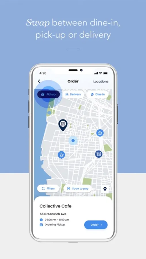 -Schedule a pickup order to skip the queue at Order Ahead locations by ordering and paying directly through the app
