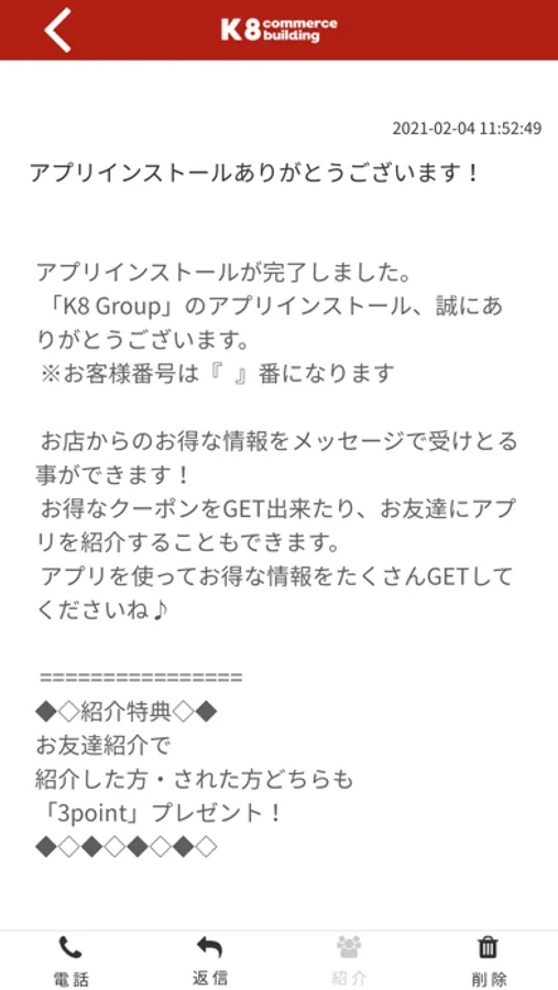 K8 GroupのアプリをSNSを通じてお友達に紹介する事ができます。