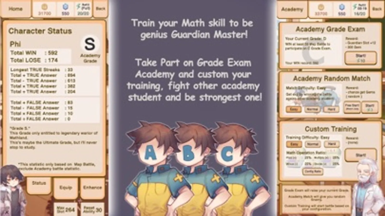 A world where people use Math Guardian Monster for battle by answering math questions. Only smart people can control a strong Guardian!