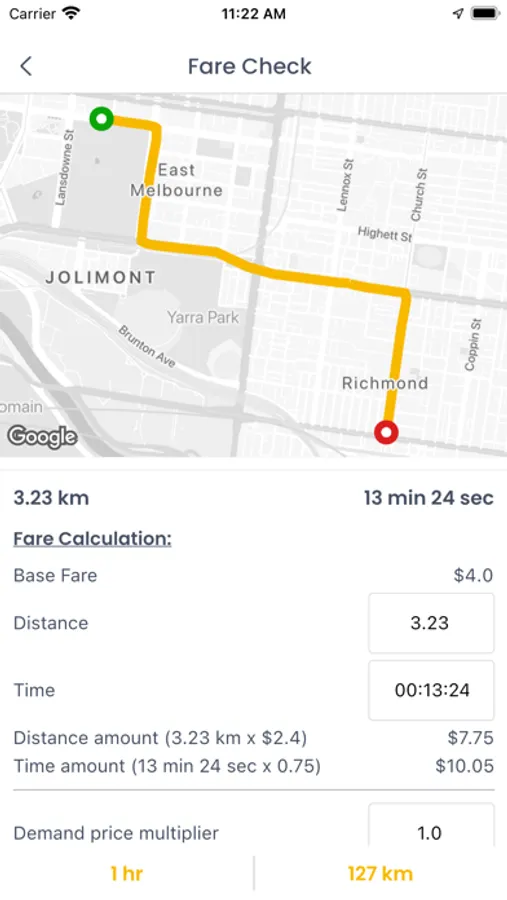 Calculate fare based on distance and time. Also compare it with upfront pricing.
