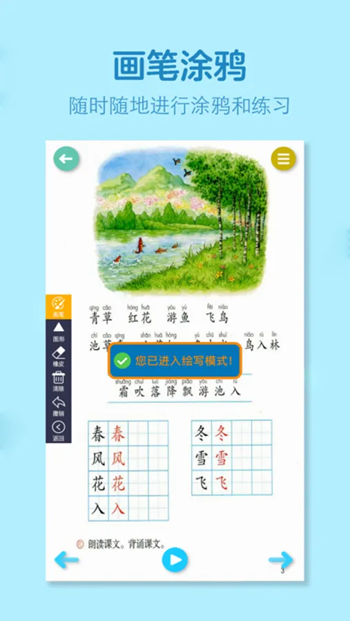 【2】画笔功能,全屏涂鸦让学习更加的有趣让学习更加高效率。完全同步最新发行教材,绝无缺漏页现象。