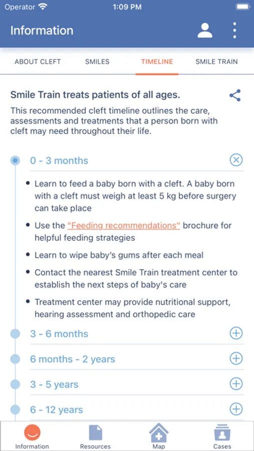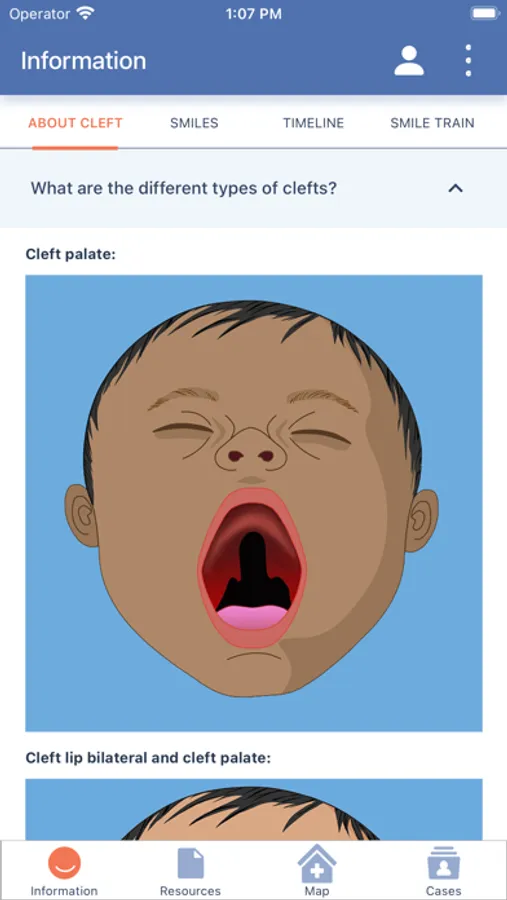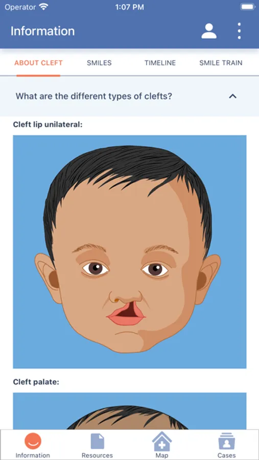 • Record encounters with people with cleft and guide the potential patients through different stages of cleft care (enabled for registered users)