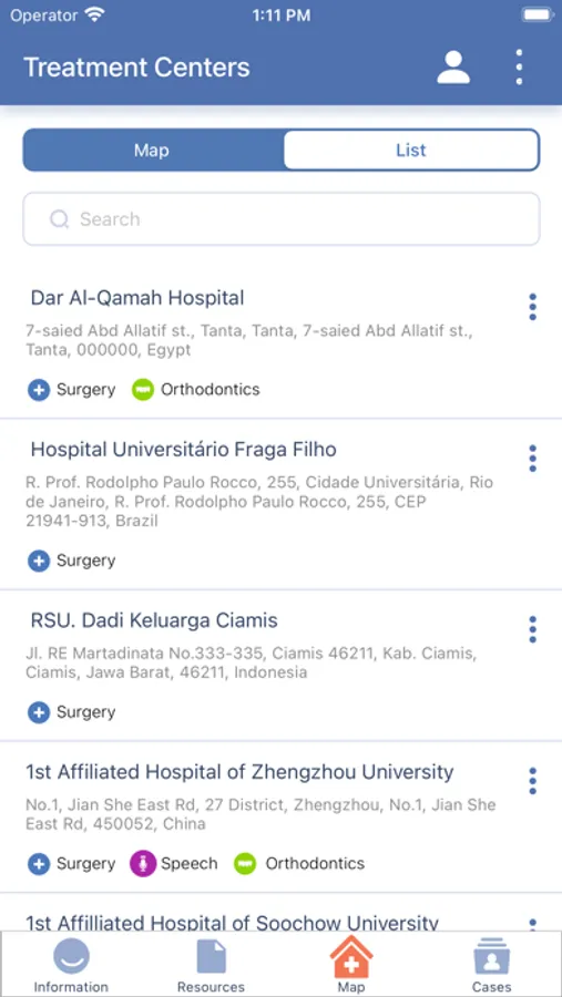 • Find Smile Train supported treatment centers, providing free cleft care in 70+ countries