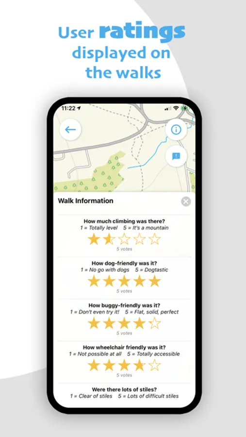 After each walk, you can fill in the quick questionnaire in the app to feed back valuable information about the walk. We will then use this data to improve the app's walks over time and some of your comments and ratings could be published against each walk to help other users.
