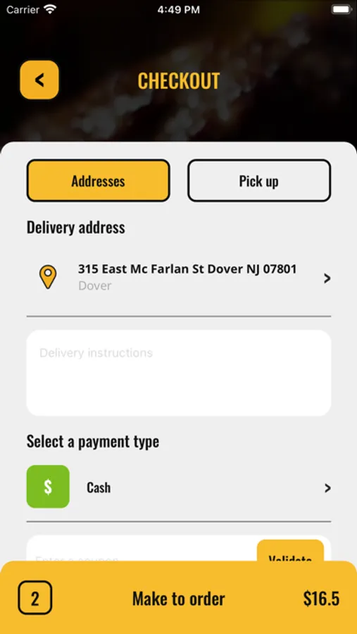 Select collection and delivery address, give us instructions and send or select food and drink products, personalize them, add them to the shopping cart and send them.
