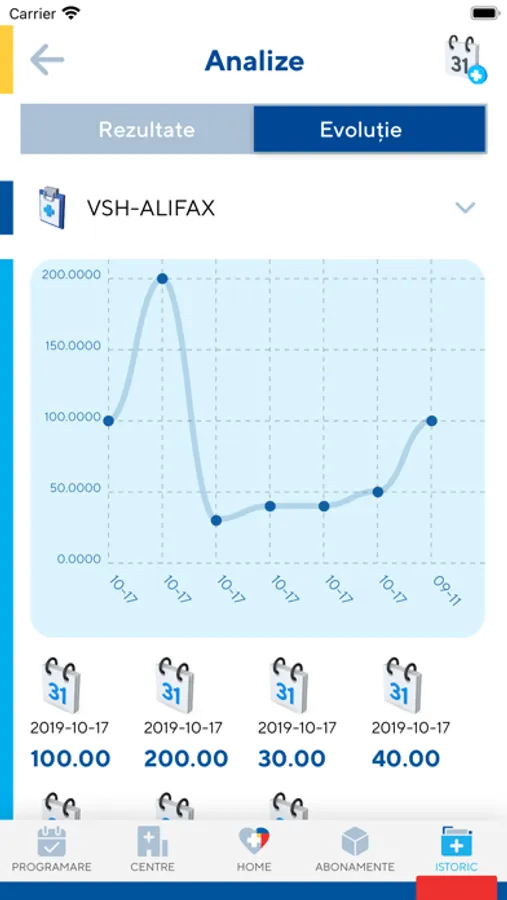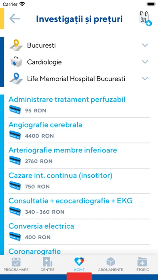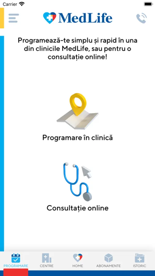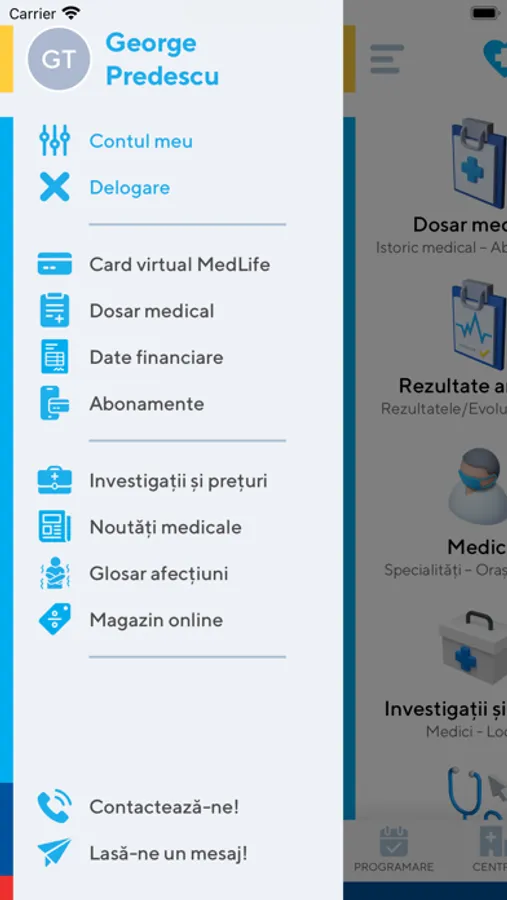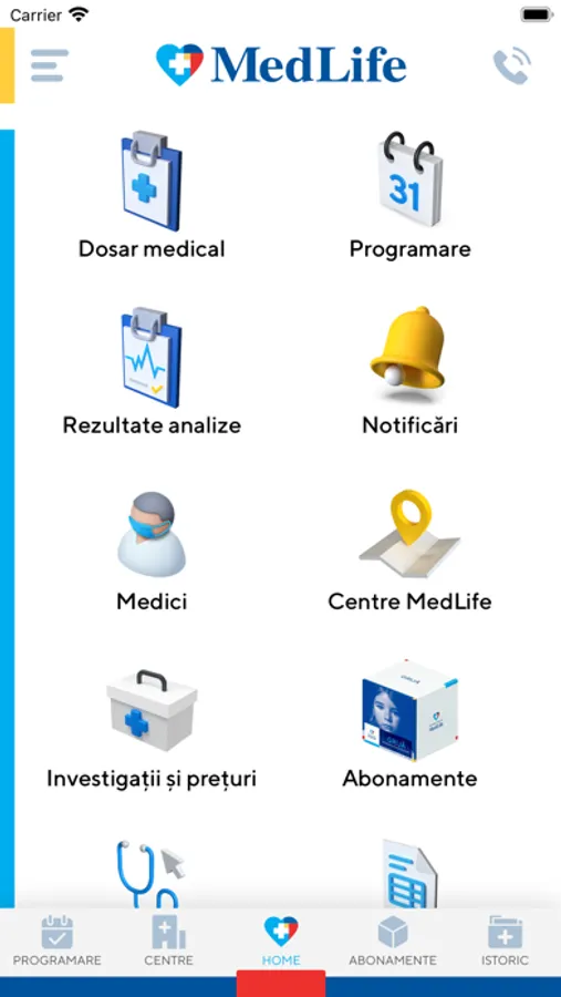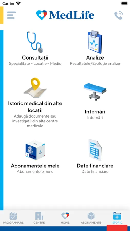 • Istoricul medical în cadrul MedLife: programări active, consultații, internări, diagnostice;