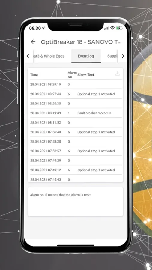 The app automatically alerts the user on specific events which could have a negative impact on production yield.