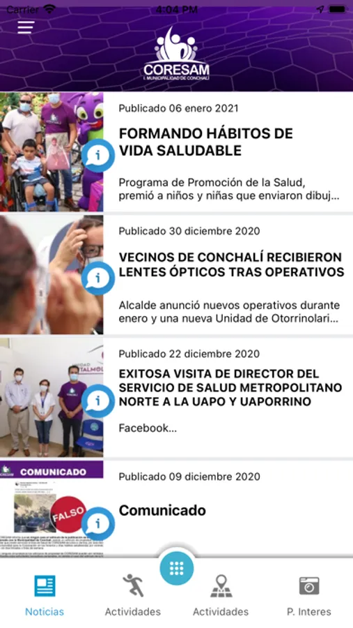 Aplicacion Salud Conchali, actividades de promoción de la salud, noticias y videos para estar conectado con todas las novedades del area de salud de la comuna