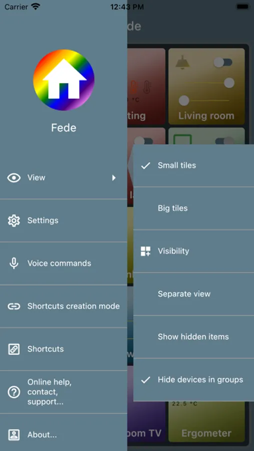 - Change the display name, tile color, icon, icon color and voice command for every device/group/template.