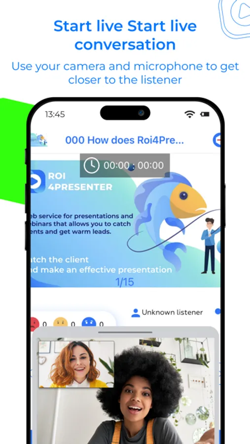 Roi4Presenter is a web service and mobile application for interactive online presentations, lead generation and outreach. With the app, you can use your smartphone as a presentation remote control and communicate with your audience online.