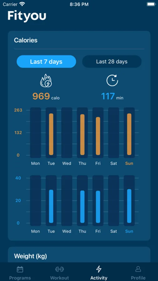 * Connect Fityou to Apple Health and keep track of all your finished activities and burned calories.