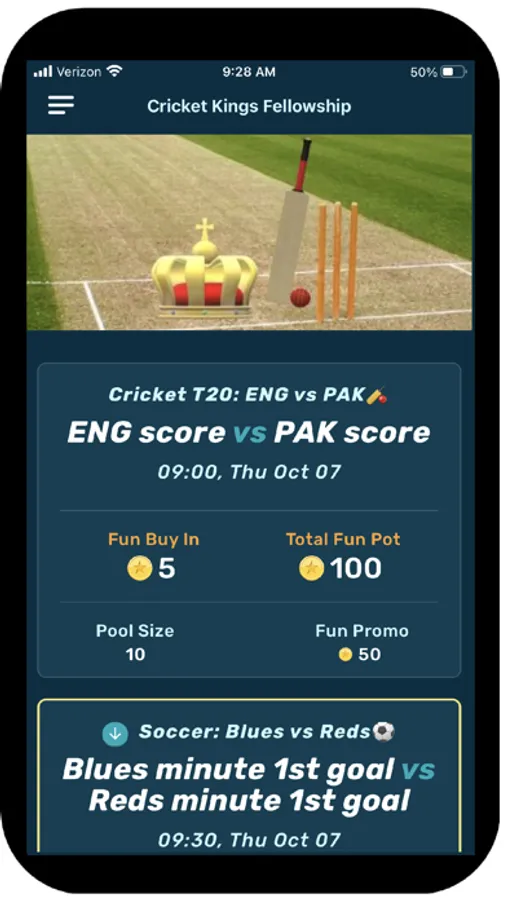 FunWager does not facilitate any monetary transactions, nor any sports feeds like events, odds, scores, results and markets... but it is fun!
