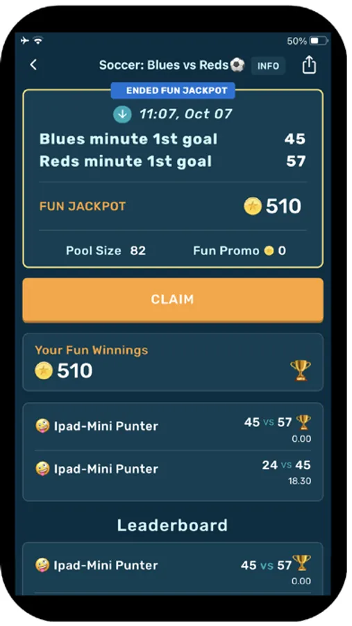 11. Winning Player(s) will have a gold trophy displayed and a [Claim Reward] button
